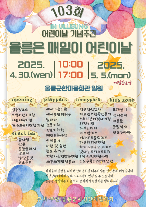 울릉군, 어린이날 기념 주간 행사 30일 개막