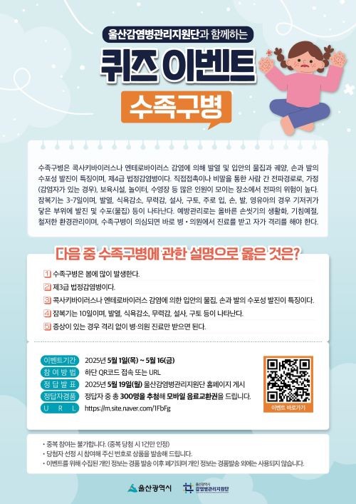 울산시, 수족구병 예방 온라인 퀴즈 행사 개최