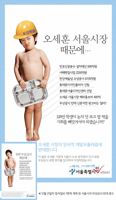 무상급식 광고 패러디 확산…“신문사 광고할 돈 무상급식 보태라” 오세훈 맹비난