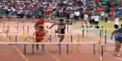 中 막장 허들경기…허들 넘기 실패하자 허들 격파해 완주
