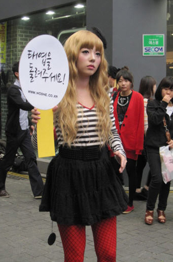 명동 태엽녀, 뭐가 바비인형? 평범하게 생긴 홍보녀일 뿐