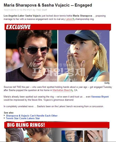 [종합] 세계 랭킹 18위 샤라포바, NBA 톱스타 부야치치와 약혼…기자회견