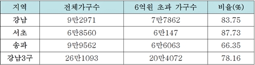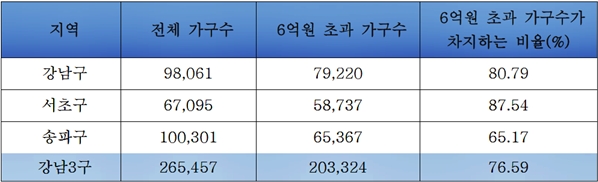 “강남3구 전체 가구중 78% 주택담보대출 더 받는다”