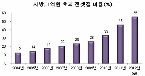 지방 1억원 초과 전셋집 55%…8년간 43% 급등