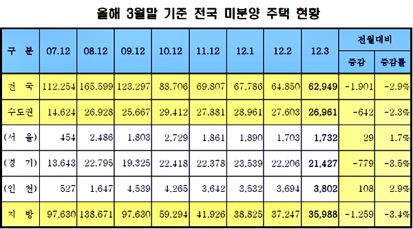 전국 미분양주택 3개월 연속 줄어