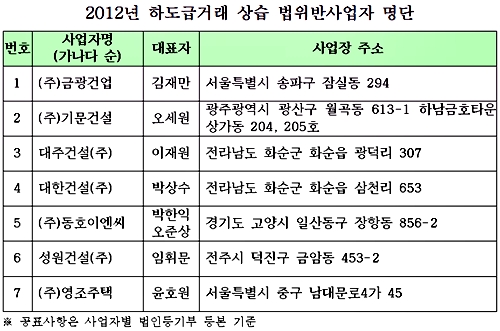 공정위, 하도급법 상습위반 7개 건설업체 공개