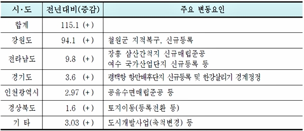국토면적, 1년동안 여의도 면적 40배 늘어