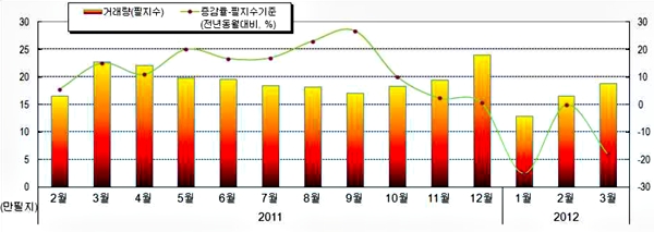 올해 3월 땅값 0.12%↑…거래량은 소폭 감소