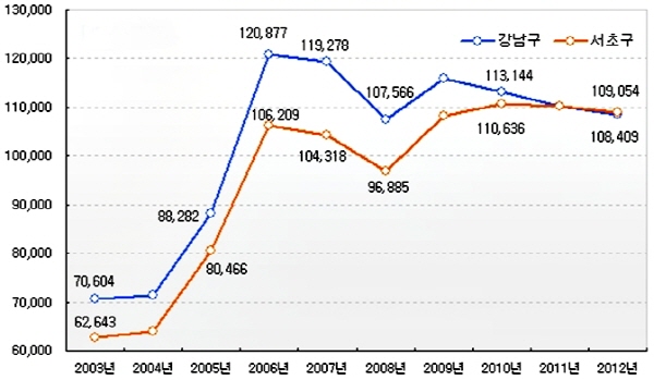 서초구, 강남 아파트값 ‘추월’…645만원 더 비싸