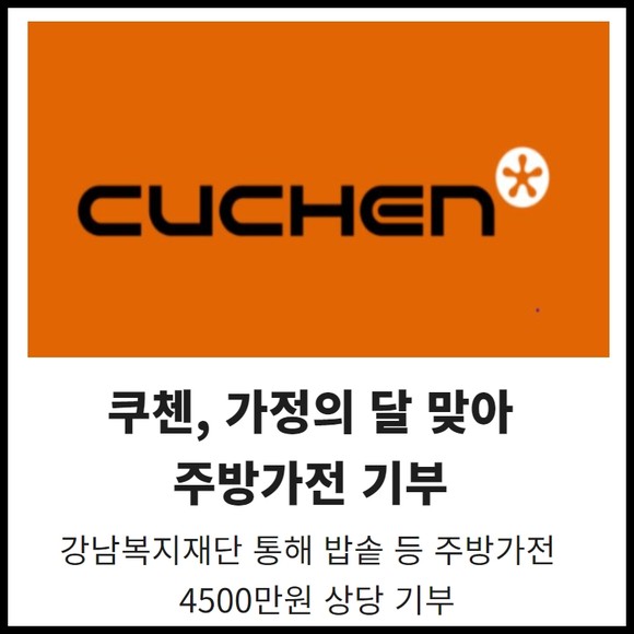 [카드] 쿠첸, 가정의 달 맞아 주방가전 기부