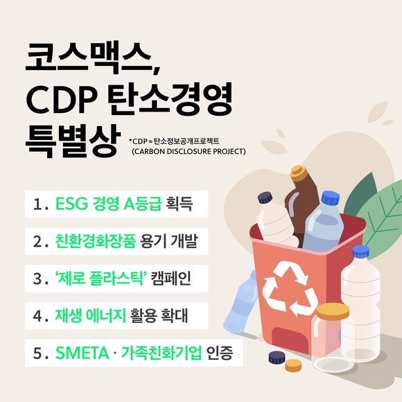 [카드] 코스맥스, 국내 화장품 ODM 업계 최초 CDP '탄소경영 특별상'