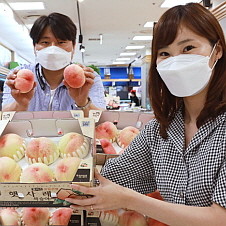 [포토] 롯데마트 "새벽에 수확한 복숭아 맛보세요"