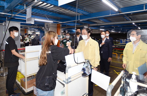 성윤모 장관, 쿠팡 물류센터 방문…방역 관리 현장 점검
