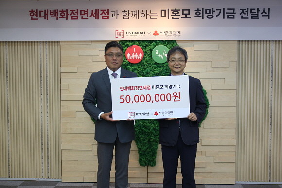 현대백화점면세점, 미혼모 자립 지원…5000만원 전달