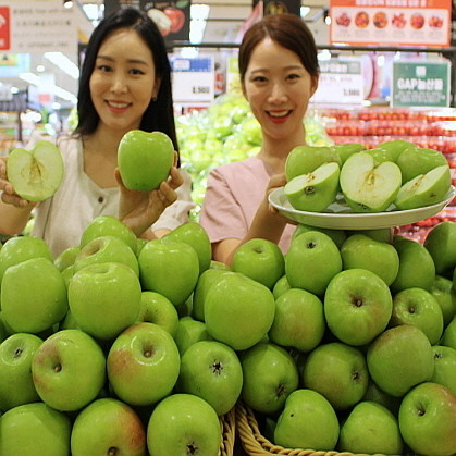 [포토] 롯데마트 "올해 첫 출시한 연두사과 맛보세요"