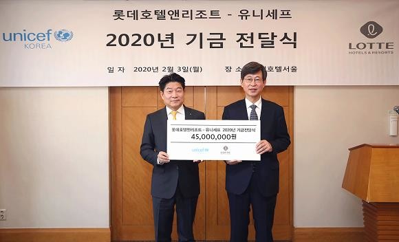 롯데호텔, 유니세프 '스쿨즈 포 아시아' 기부금 4500만원 전달