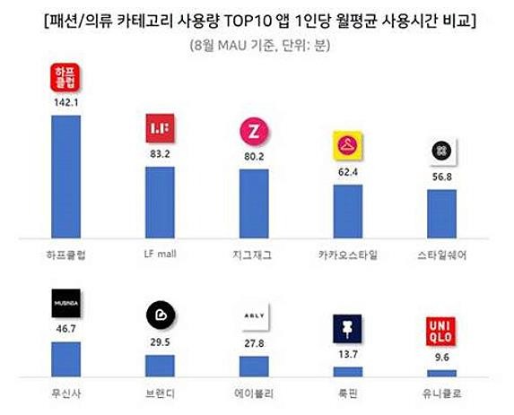 LF 하프클럽, 패션 어플리케이션 사용시간 부문 1위