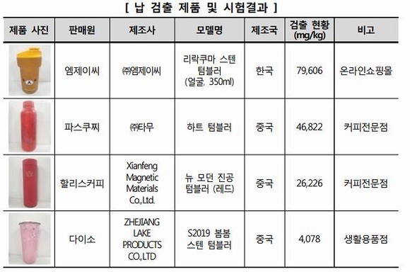 일부 텀블러 제품 표면에 유해물질 '납' 검출
