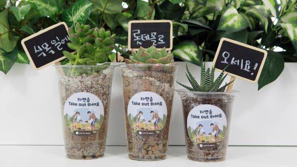 롯데자산개발 "테이크아웃 컵 가져오면 다육식물 심어드려요"