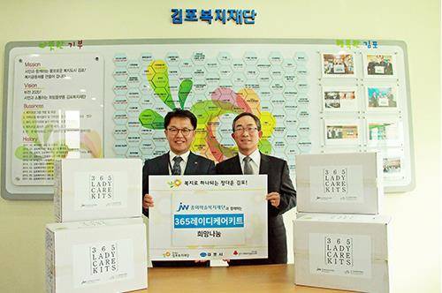 JW그룹-김포복지재단, 저소득 여성 100명에 보건 물품 지원