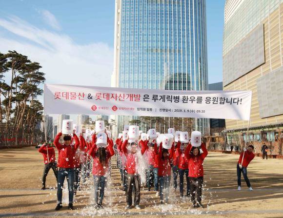"루게릭 환우들 힘내세요" 롯데자산개발·롯데물산 임직원 '아이스버킷 챌린지'