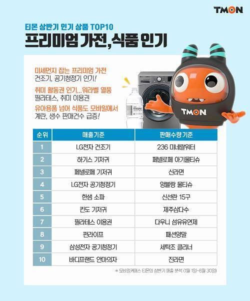 티몬 "상반기 매출 1위 건조기 · 판매수량 1위 PB생수"
