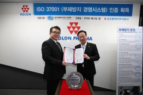 코오롱제약, 중견 제약사 최초 'ISO37001 인증' 획득