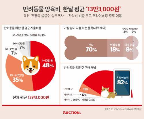 반려동물 양육비, 한달 평균 13만원…지출 품목 1위 '간식'