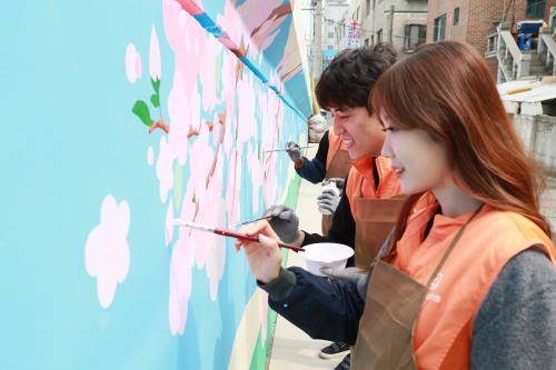 한화갤러리아 '벚꽃 벽화 그리기' 사회공헌활동 진행