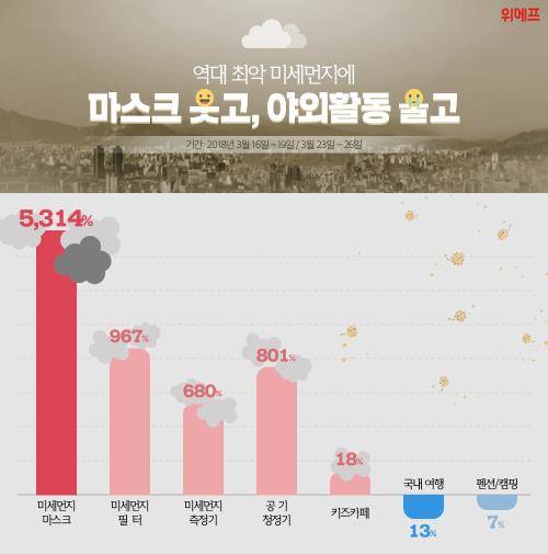 최악 미세먼지에 마스크 매출 주말 새 676% 폭증