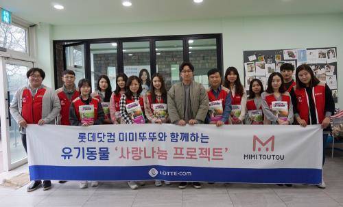 롯데닷컴, 유기동물에 사료기부·봉사활동 진행