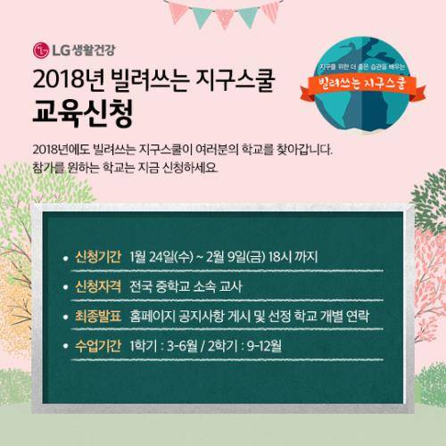 LG생활건강 '빌려쓰는 지구스쿨' 참가 중학교·대학생 기자단 모집