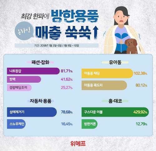 '한파특수' 온라인 쇼핑몰, 방한용품 판매 급증