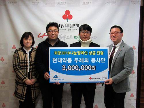현대약품 두레회, 불우이웃돕기 성금 300만원 기탁