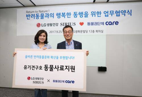 LG생활건강-케어, 올바른 반려동물문화 확산에 '맞손'
