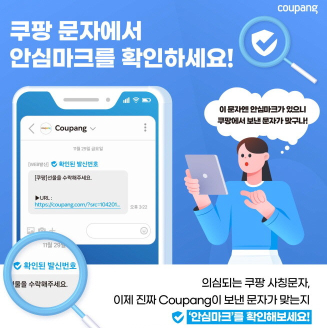 쿠팡, 유통업계 최초 '스미싱 예방 안심마크' 도입