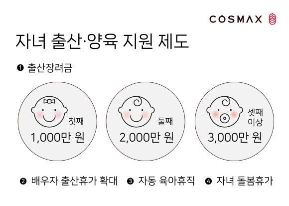 "셋째 출산에 3000만원" 코스맥스, 임직원 대상 복리후생 제도 확대