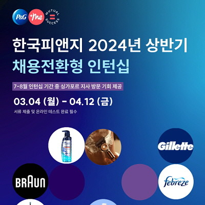 한국P&G, 2024년 상반기 채용전환형 인턴 공개 모집