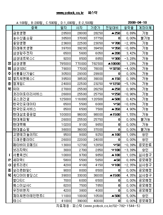장외시장 삼성계열 '혼조' 범현대계열 '상승'