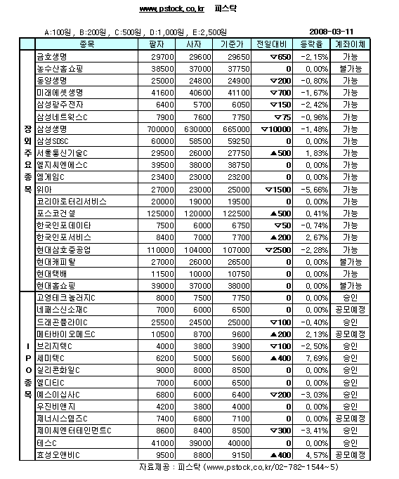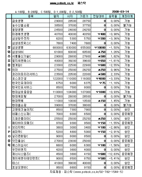 장외IPO/삼성생명 소폭반등