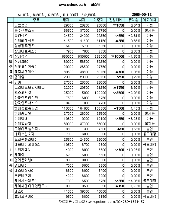장외IPO/보험주 상승, 생보사 하락