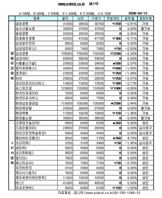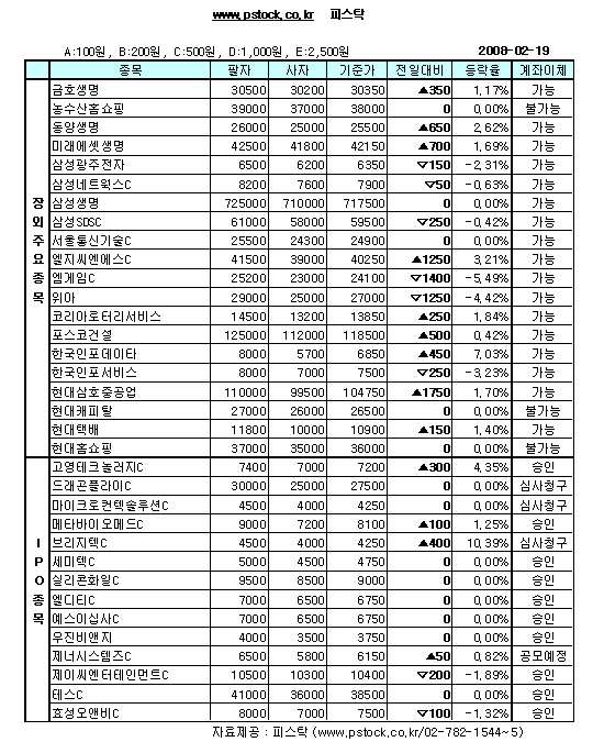 장외IPO/생보사 약보합 마감
