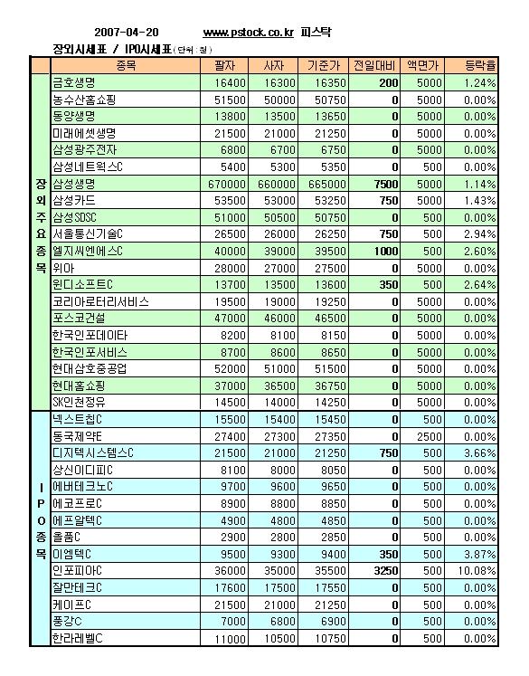 장외IPO/삼성생명 강세