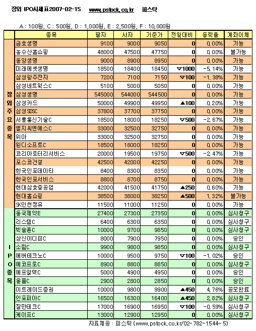 [동양증권]모닝와치2/15 : 하나로텔레콤/풍산/시황