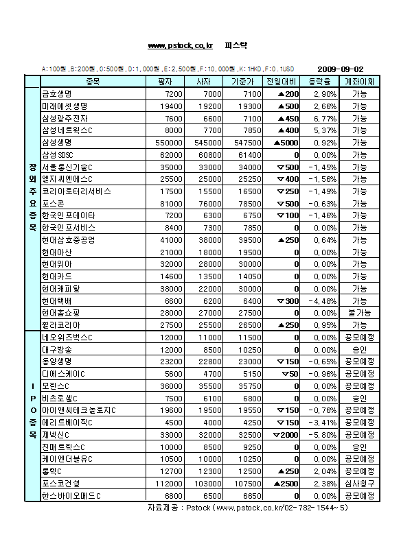 주춤한 코스피 따라 장외부문도 혼조