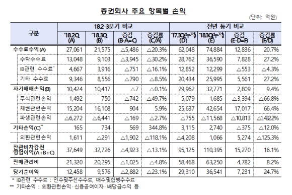 증권사 3분기 순익 9576억…증시 조정에 23.1%↓