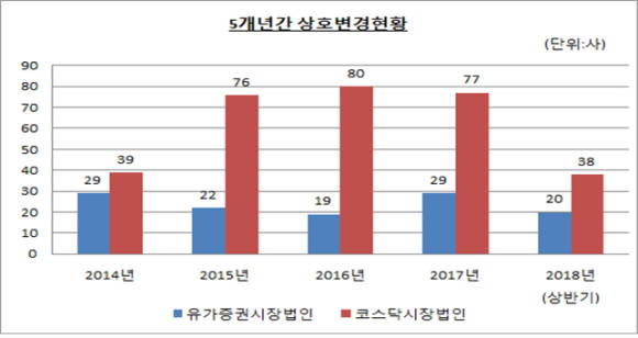 올해 상반기 58사 상호변경 실시…전년比 1.7%↓
