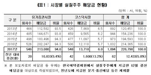 지난해 실질주주 배당금 22조6798억…전년比 5.8%↑