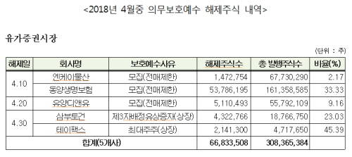 내달 중 37개사 1억7497만주 의무보호예수 해제
