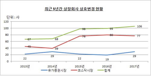 지난해 상장법인 상호변경회사 106사…전년比 7.1%↑